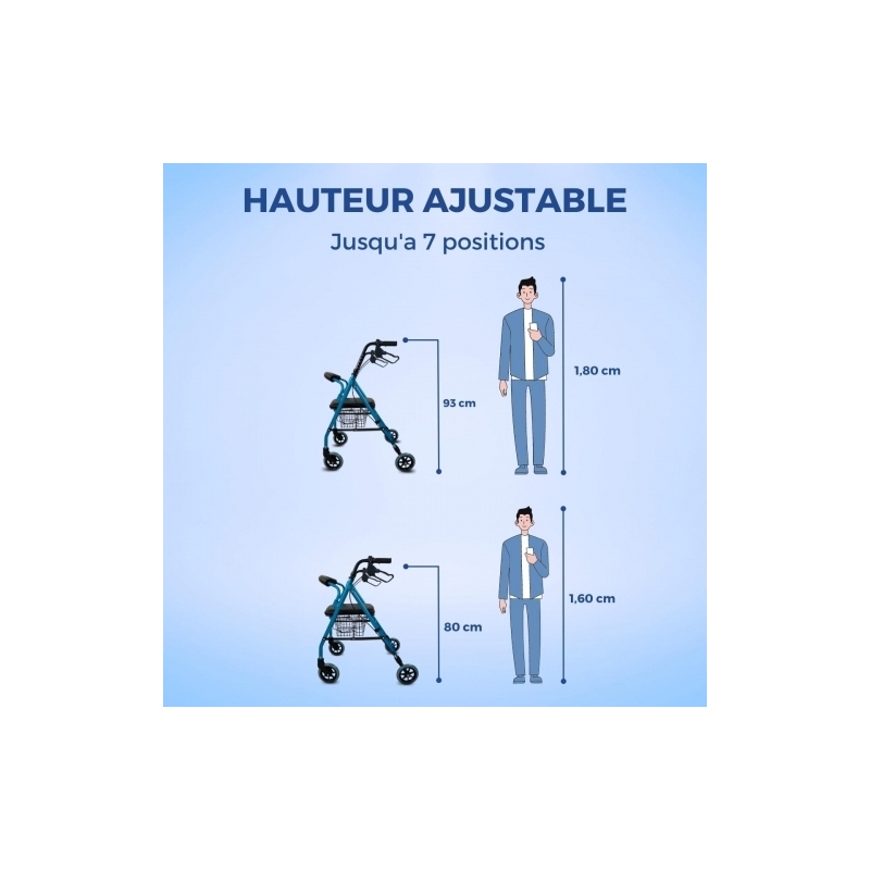 RÉGLABLE : pour garantir un maximum d'adaptation et de confort d'utilisation, ce déambulateur est réglable en fonction de la taille de l'utilisateur.