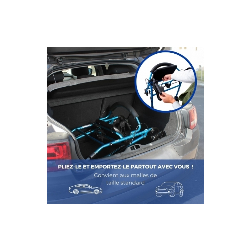 PLIABLE : cette aide technique est pliable, vous pourrez donc sans problème mettre le déambulateur adulte dans le coffre de votre voiture, voire le ranger sans prendre trop de place.