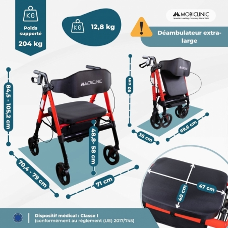 BARIATRIQUE ET RÉSISTANT : Ce déambulateur supporte jusqu'à 204 kg, étant un modèle renforcé qui offre une stabilité et une sécurité maximales, idéal pour les utilisateurs en surpoids ou ceux qui ont besoin d'une plus grande capacité de charge.