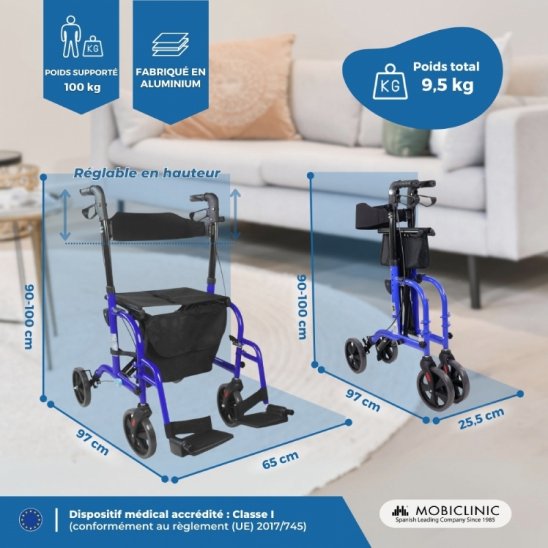 Le déambulateur orthopédique « Picasso » a un design novateur et léger en bleu. C’est exceptionnel pour améliorer la mobilité et la qualité de vie des personnes à mobilité réduite.