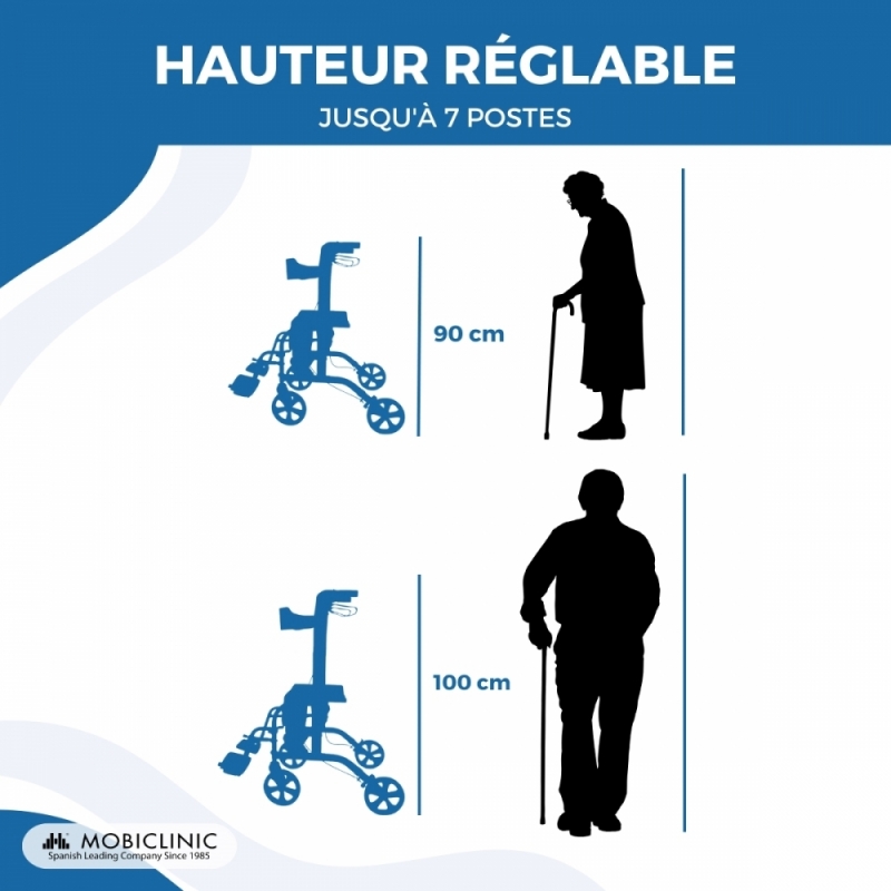 Les matériaux de ce déambulateur en aluminium sont de la plus haute qualité, offrant valeur, sécurité et résistance. Il permet de prévenir les chutes et offre à l'utilisateur une plus grande sécurité pour qu'il puisse se déplacer sereinement et gagner en autonomie et en indépendance.