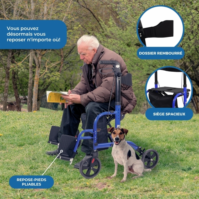 Il dispose d'un siège et d'un dossier rembourrés, fabriqués pour garantir le confort et la sécurité de l'utilisateur, et comprend un repose-pieds.