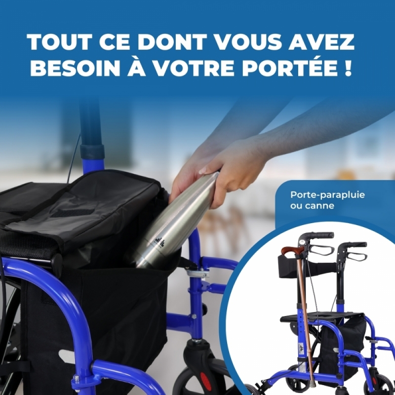 Ce déambulateur pour seniors dispose également d'un fantastique sac dans lequel vous pourrez ranger toutes vos affaires sans problème, en toute sécurité pendant la marche.