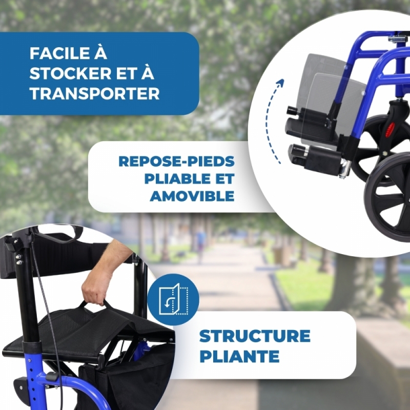 Enfin, ce déambulateur pour adultes a la capacité de se plier et, grâce à son matériau léger, il est facile à transporter.