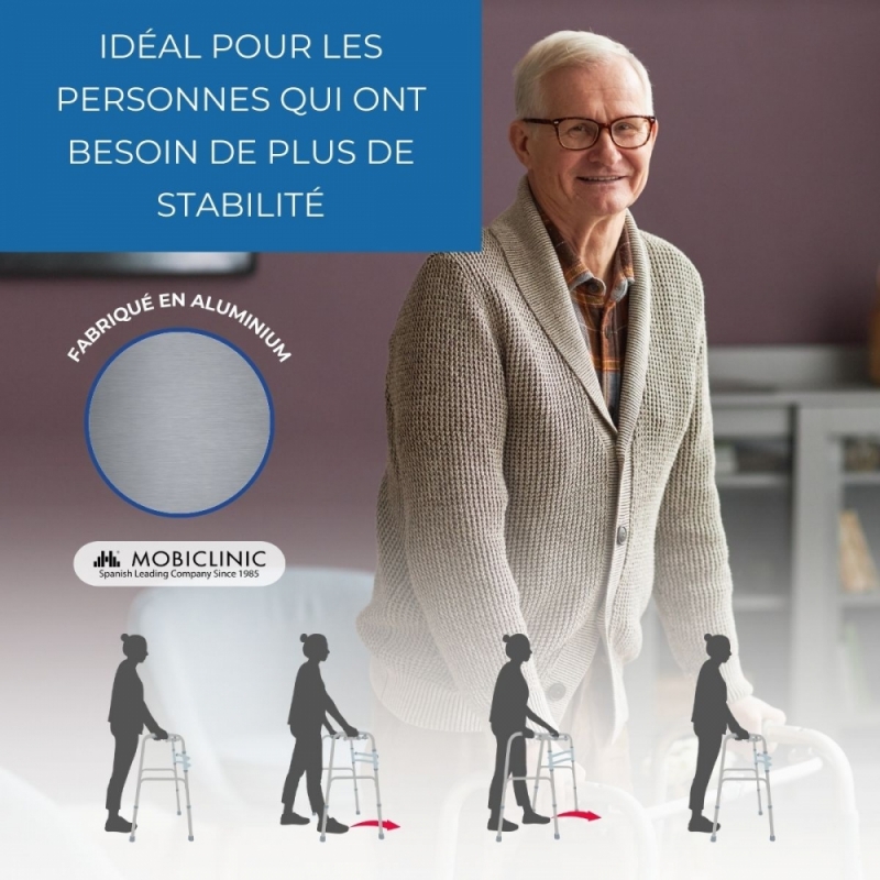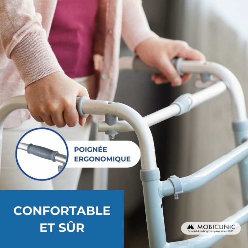 Le déambulateur pour adultes Mezquita est le meilleur déambulateur sans roues pour les personnes âgées que vous pourrez trouver. Avec lui, les personnes à mobilité réduite pourront marcher avec fermeté et confiance. Sa structure légère en aluminium permet à ce déambulateur orthopédique d'être manipulé facilement, en exerçant le moins d'efforts possible. Le mouvement devient beaucoup plus naturel en utilisant ce déambulateur sans roues puisqu'il accompagne l'utilisateur progressivement sans à-coups ni glissements.