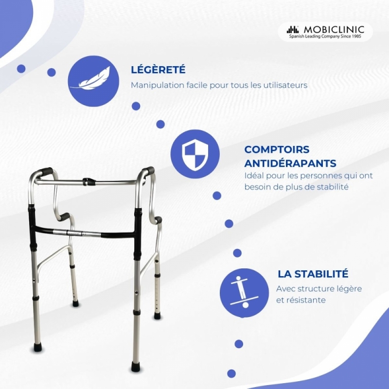Déambulateur sans roues | Pliable | Aluminium | Pórtico | Mobiclinic