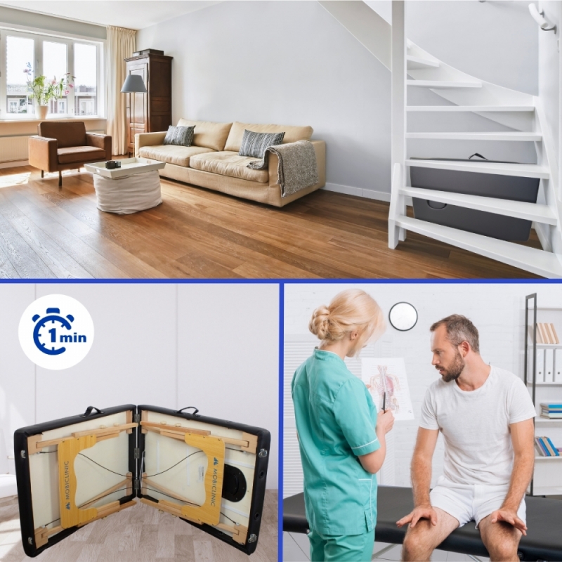PLIABLE : il prend donc peu de place et peut être transporté si vous faites des visites à domicile. Pour plus de confort, il est composé de poignées qui facilitent le transport.