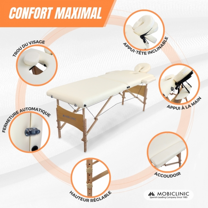 Elle est pliable, donc idéale pour des visites à domicile. Pour plus de confort lors du transport, la table dispose de poignées.