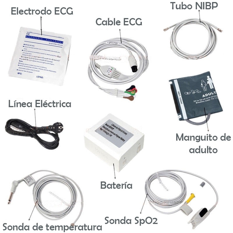Il permet la mesure, la visualisation et l'enregistrement de la pression artérielle non invasive (PNI), la saturation en oxygène (SPO2), larespiration, l'électrocardiogramme et latempérature. Il dispose également d'une fonction de calcul de la dose de médicament. Signes vitaux, ECG, REEE, TEMP, IBP.