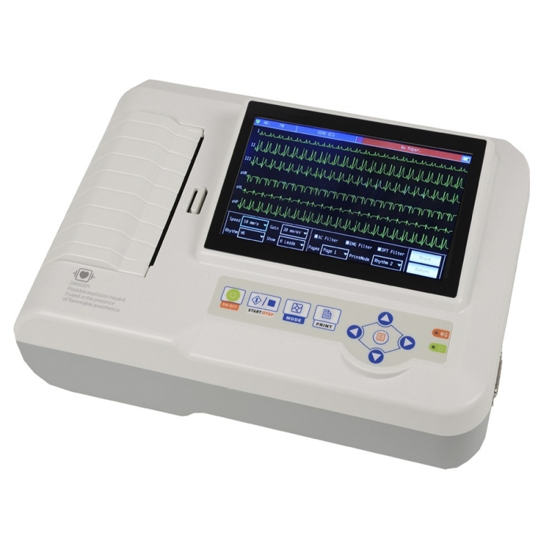 L'ECG600G est un électrocardiographe numérique à 6 canaux compact et léger qui peut capter le signal ECG à 12 dérivations et imprimer la forme d'onde grâce au système d'impression thermique.