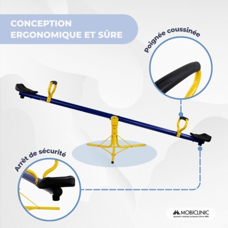 PIVOTEMENT À 360° : La bascule Mobifun est conçue pour offrir une expérience de jeu optimale grâce à sa rotation à 360°. Elle permet aux enfants de se balancer dans toutes les directions, favorisant ainsi le développement de l'équilibre et de la coordination dès le plus jeune âge.