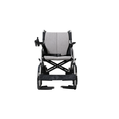 Ses deux modes de conduite permettent d'utiliser le fauteuil en mode électrique, entièrement piloté par le joystick, ou en mode à assistance électrique, où le moteur assiste la propulsion, réduisant ainsi l'effort – très pratique sur les pentes douces ou les longs trajets. Son cadre pliable en aluminium facilite le transport et le rangement, ce qui en fait une option pratique pour les voyages et un usage quotidien. Il est équipé de commandes intelligentes avec bouton marche/arrêt, indicateur de charge, joystick universel et avertisseur sonore.