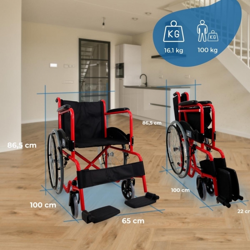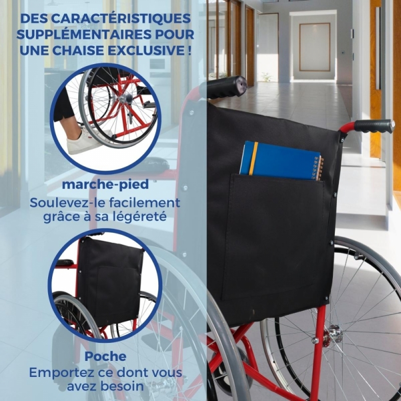 CONFORTABLE : avec de grandes roues automotrices. Repose-pieds et accoudoirs fermes et confortables. Il a également des freins sur les roues arrière, ce qui en fait une chaise sûre pour les personnes âgées.