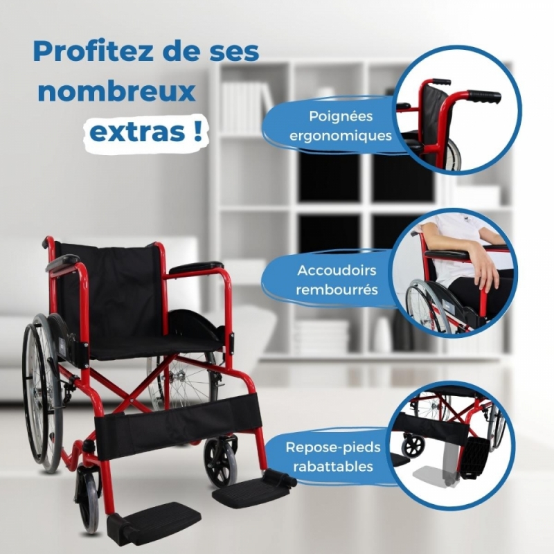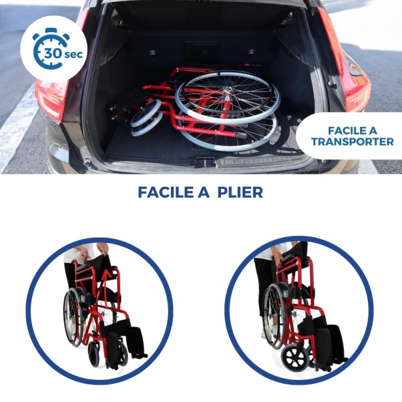 PLIABLE : fauteuil roulant pliable facile à ranger. Se replie pour une portabilité facile