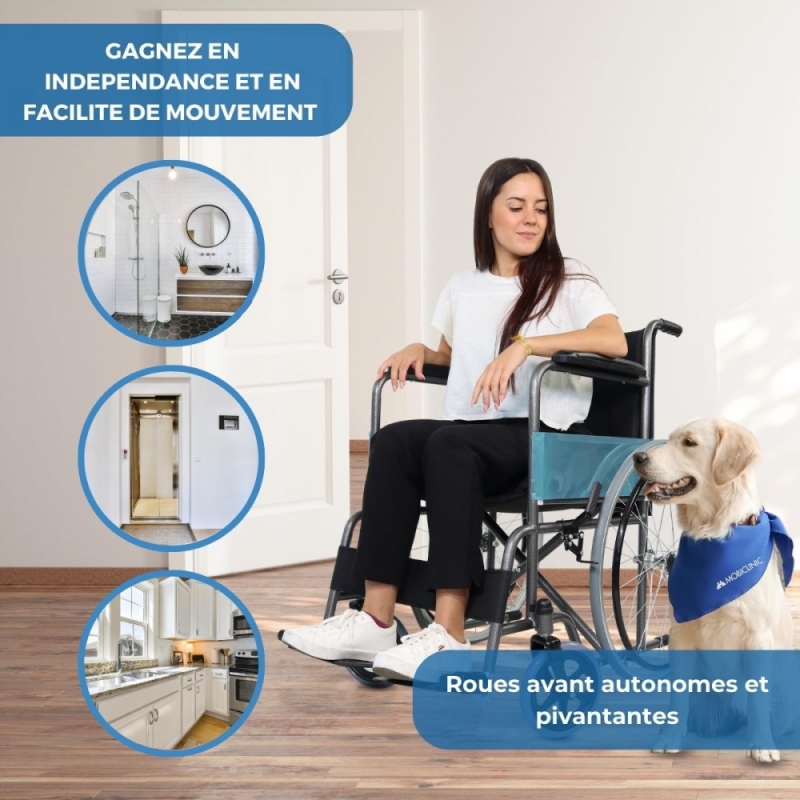 Le fauteuil comprend un monte-trottoir , conçu pour permettre au passager de franchir les bordures ou les trottoirs avec plus de confort et sans effort supplémentaire.