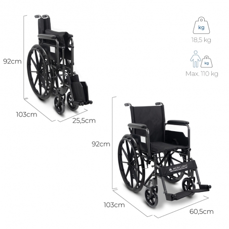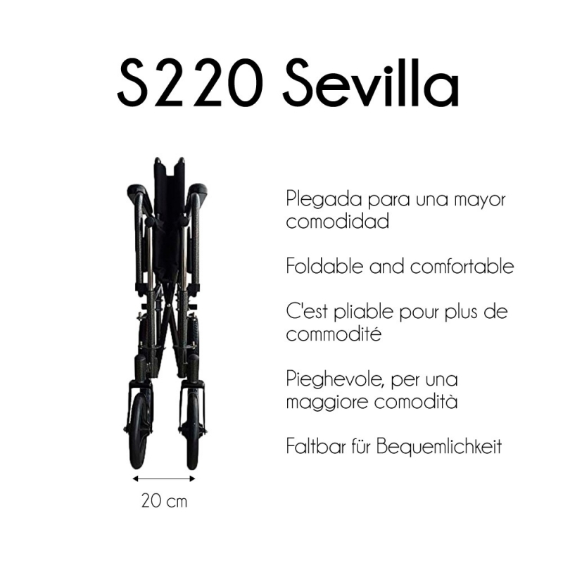 Fauteuil roulant | Pliant | Acier | Roues arrière amovibles | Repose-pieds et accoudoirs | S220 Sevilla | Premium Mobiclinic