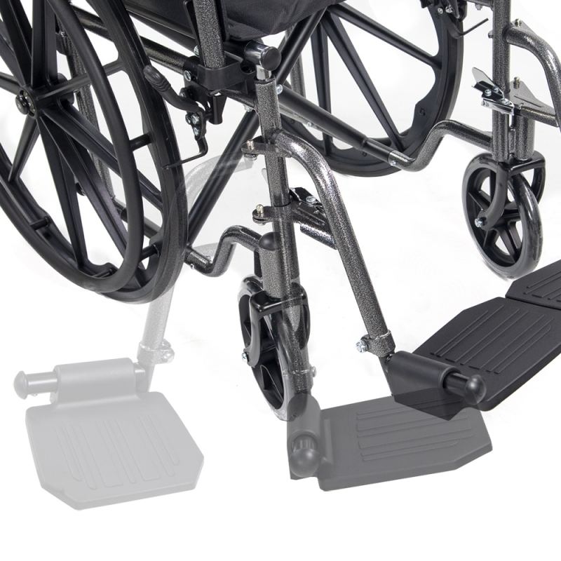 - Ce modèle, sans repose-pieds, mesure environ 12 cm de moins (approximatif), pour les cas de passage dans des endroits plus étroits,