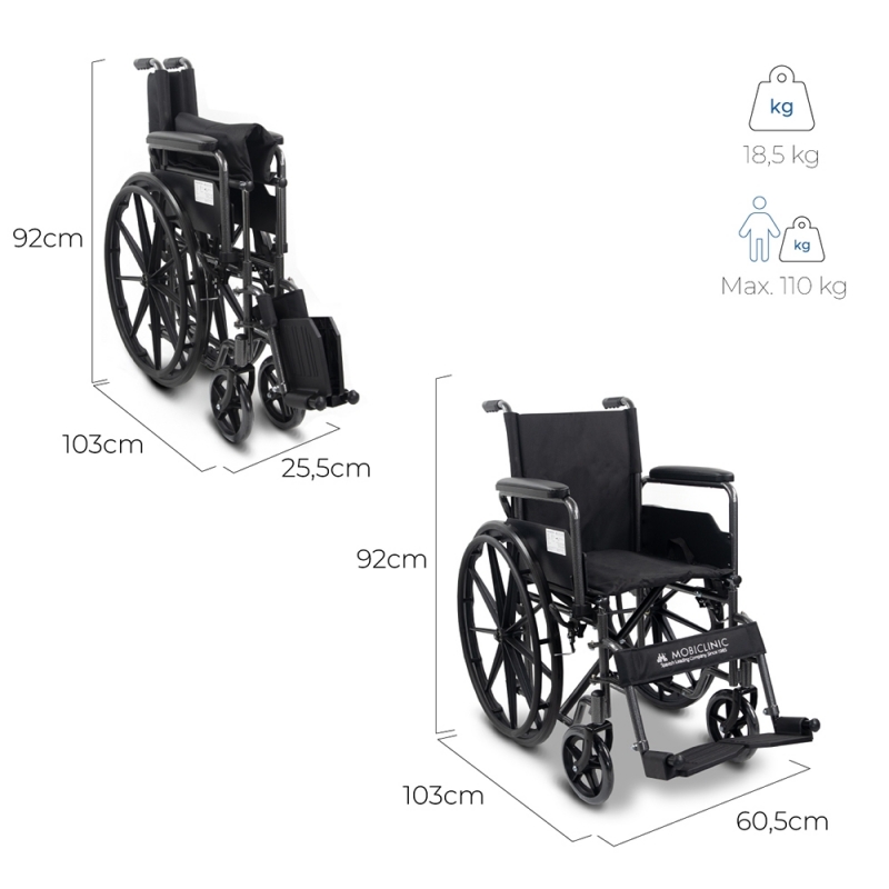 En termes de design et d'ergonomie, les fauteuils orthopédiques ont un design élégant avec un cadre de couleur anthracite, un revêtement en nylon et une poche dans le dossier pour transporter des effets personnels. Il dispose d'un siège large et confortable avec un support jusqu'à 110 kg - des repose-pieds réglables, adaptables à la hauteur de l'utilisateur et faciles à enlever.