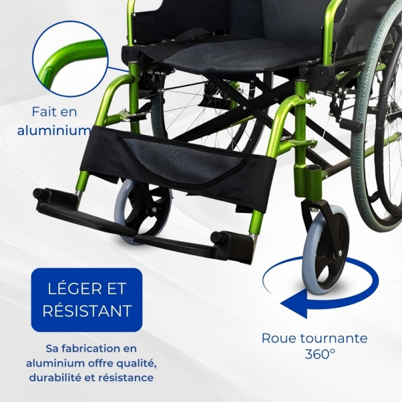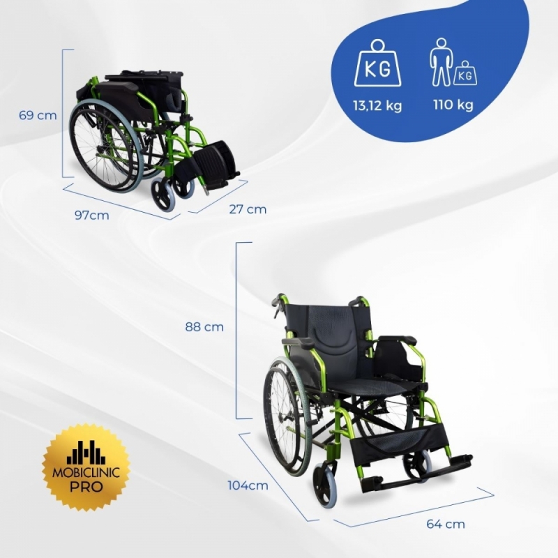 Fauteuil roulant pliable | Aluminium | Dossier divisé | Accoudoirs pliants | Vert | Bolonia | Mobiclinic