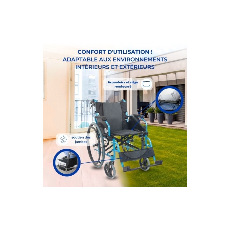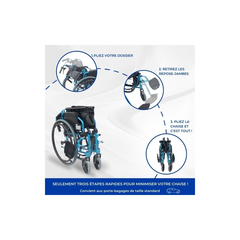 FACILE À TRANSPORTER : le fait d'être un fauteuil roulant pliant permet de le transporter confortablement et de le ranger facilement.