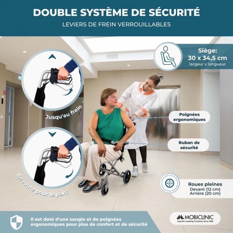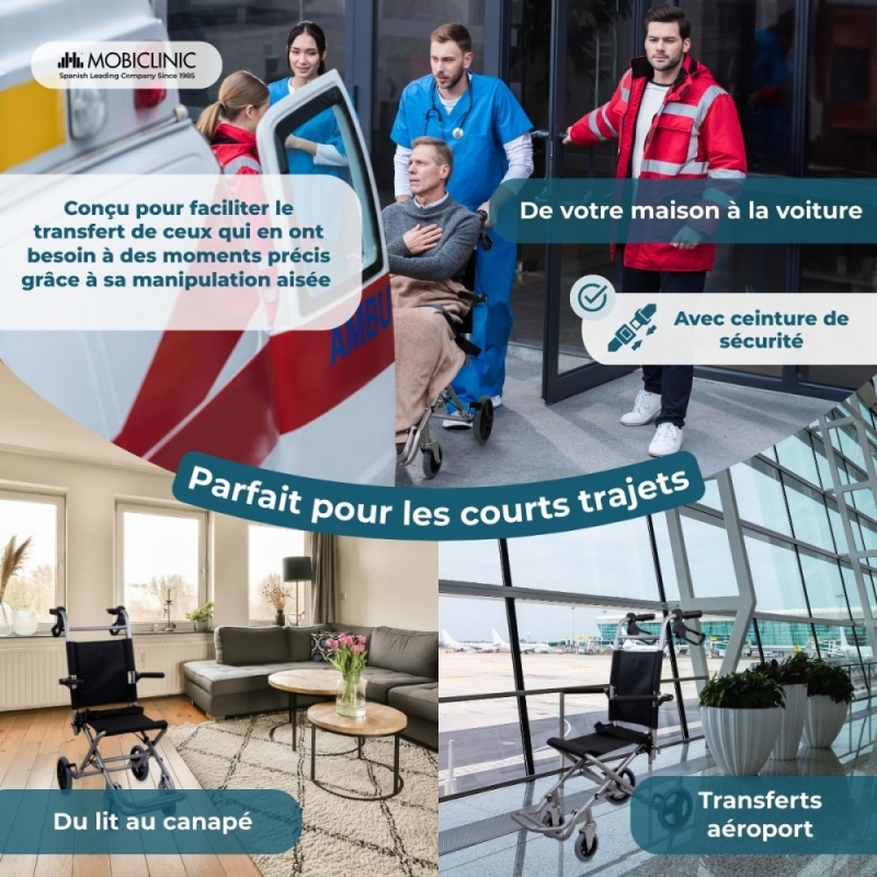 Caractéristiques techniques du fauteuil roulant de transfert :