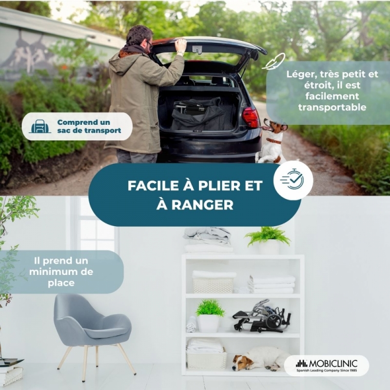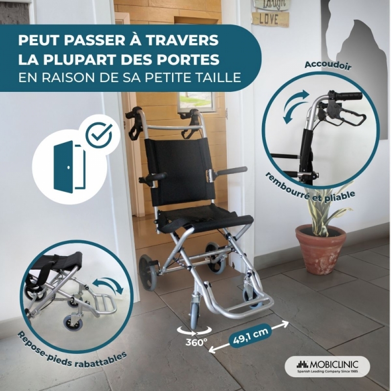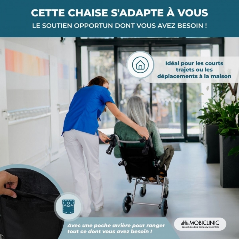 Grâce à la facilité de pliage et à la légèreté de ce fauteuil roulant en aluminium, il est possible de le transporter partout avec un minimum d'effort (sac de transport inclus). Cela vous permet de le ranger facilement à la maison ou même de le plier si vous devez le faire entrer dans des espaces restreints.