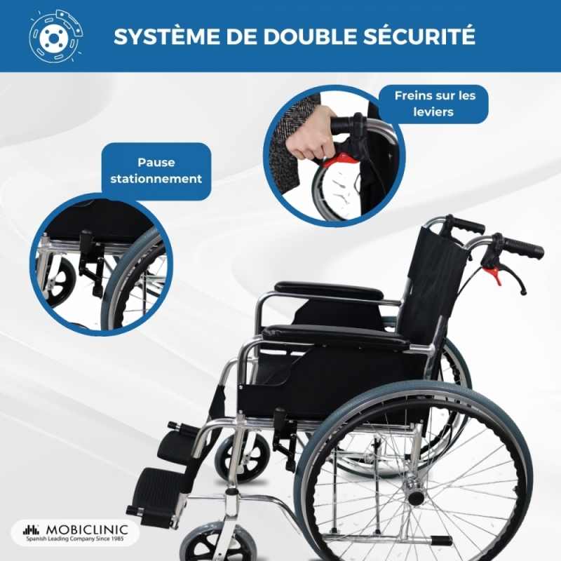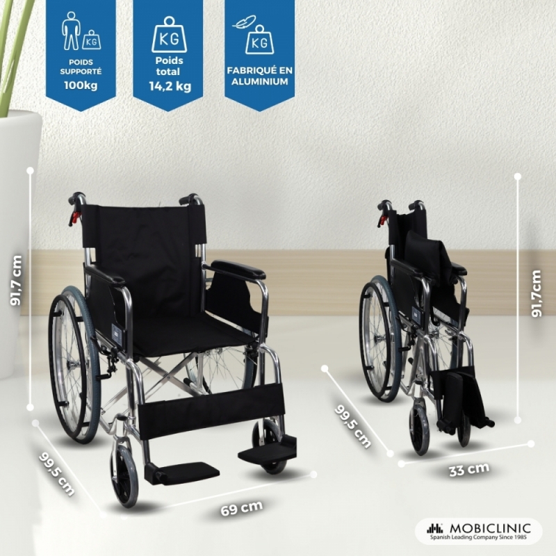 Fauteuil roulant | Pliage | Aluminium |Avec freins|Accoudoirs et repose-pieds | Sauvegarde fractionnée | Palacio | Mobiclinique