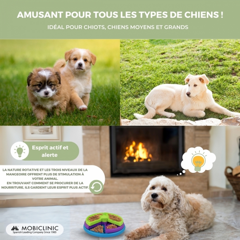 En satisfaisant l'appétit de votre chien, il devient également un stimulant cognitif . La distraction positive et la résolution de problèmes associées à la mangeoire rotative réduisent l'anxiété, offrant une expérience d'alimentation mentalement stimulante.