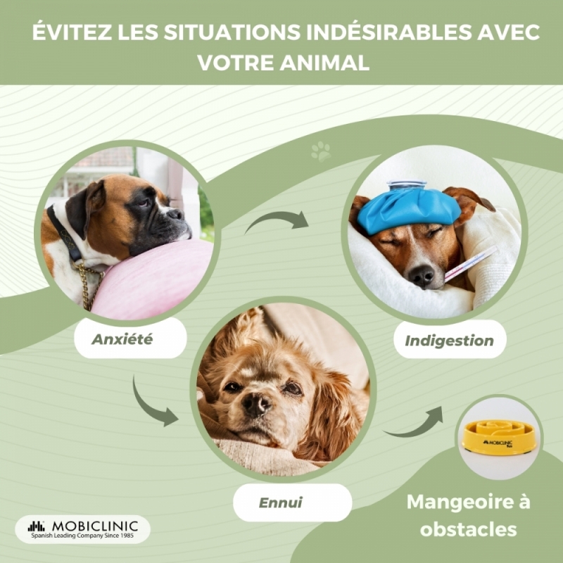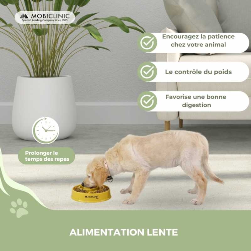 La mangeoire lente MobiEat va au-delà du simple ralentissement de l'alimentation de votre animal. Ce bol innovant prévient non seulement les vomissements et réduit les ballonnements d'estomac , mais favorise également une digestion plus saine .
