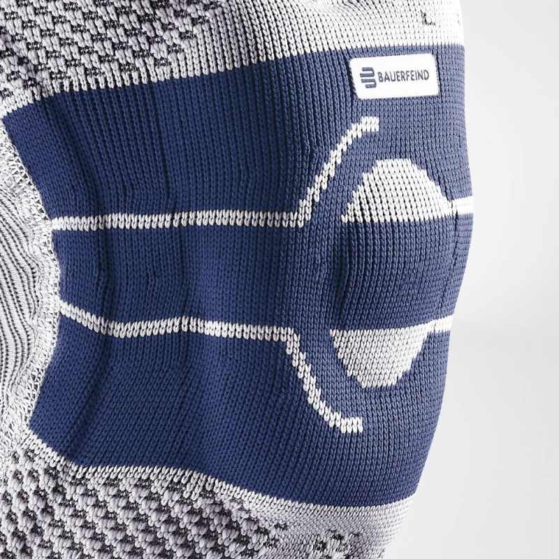 Le coussinet de forme anatomique intégré au tissu élastique (coussinet élastique) assure un massage à pression contrôlée et variable de l'articulation et de la musculature à chaque mouvement du bandage, ce qui favorise la guérison.