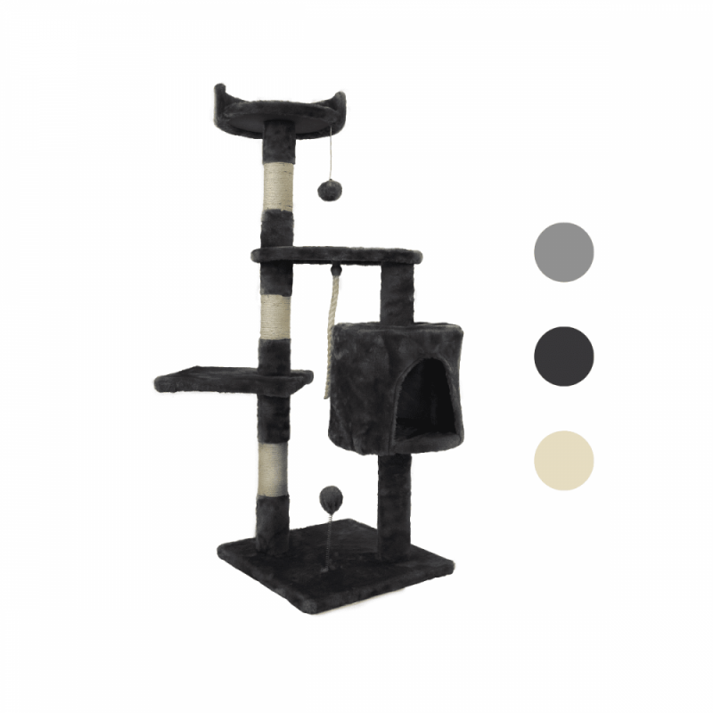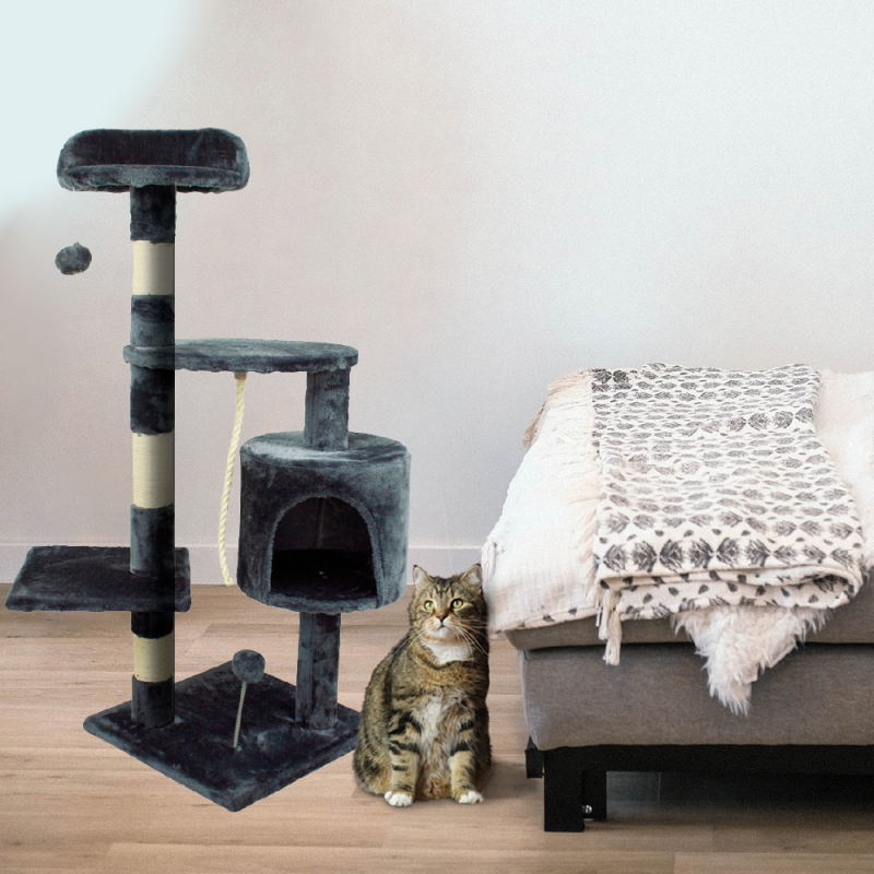 Arbre à chat | Moyen | Griffoir | 3 hauteurs | 40x40x112 cm | Gris | Silvestre | Supporte 10 kg | Mobiclinic