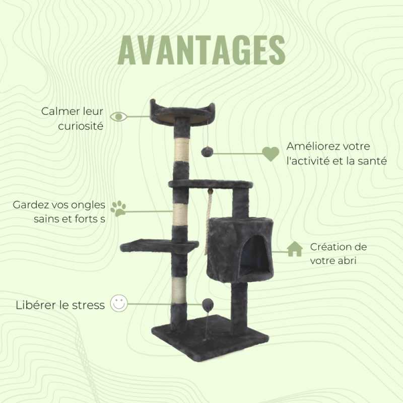 Ces jouets pour chats sont irrésistibles. Votre chat pourra s'étirer dessus, se faire les griffes et faire toutes sortes de mouvements qui l'amuseront. Il peut également s'allonger confortablement sur les surfaces molletonnées et profiter de la meilleure vue de la maison. Lorsqu'il a envie de se cacher, de se retirer ou de se reposer, il peut le faire dans l'agréable abri.