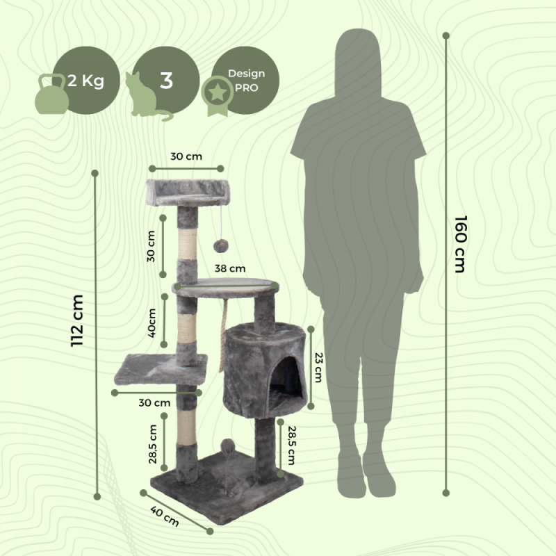 Ces jouets pour chats sont irrésistibles. En eux, votre chat s'étirera, se polira les ongles et fera toutes sortes de mouvements qui l'amuseront. Vous pouvez également vous reposer confortablement sur les surfaces légèrement rembourrées et, en même temps, profiter des meilleures vues de la maison. Lorsque vous avez envie de vous cacher, de vous retirer ou de vous reposer, vous pouvez le faire à l'intérieur de l'abri confortable.