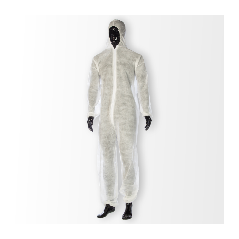 Combinaison en polypropylène avec capuche, offre une protection contre la saleté dans les zones sans risque professionnel. Poignets et chevilles élastiques pour une meilleure adaptabilité. Il est utilisé pour les travaux d'entretien.
