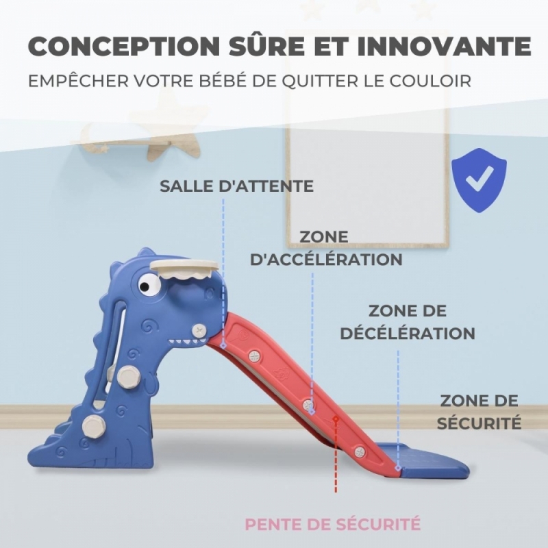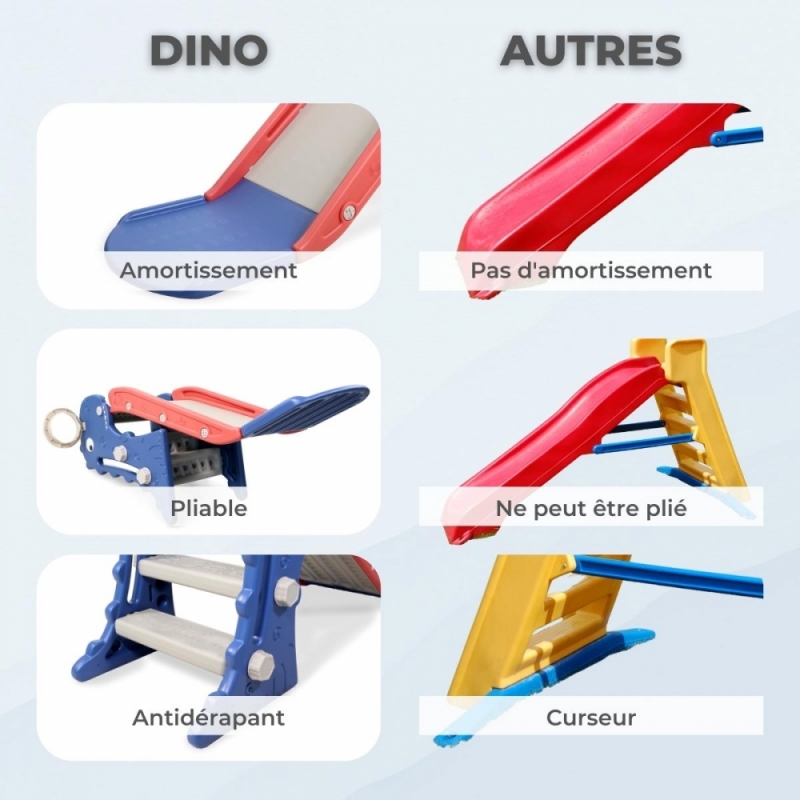 DESIGN INNOVANT ET ATTRACTIF : Le design compact et coloré en forme de dinosaure de ce toboggan pour enfants en fait un élément de jeu attrayant et totalement sûr pour les plus petits.
