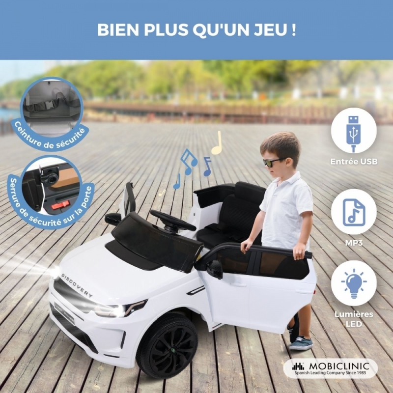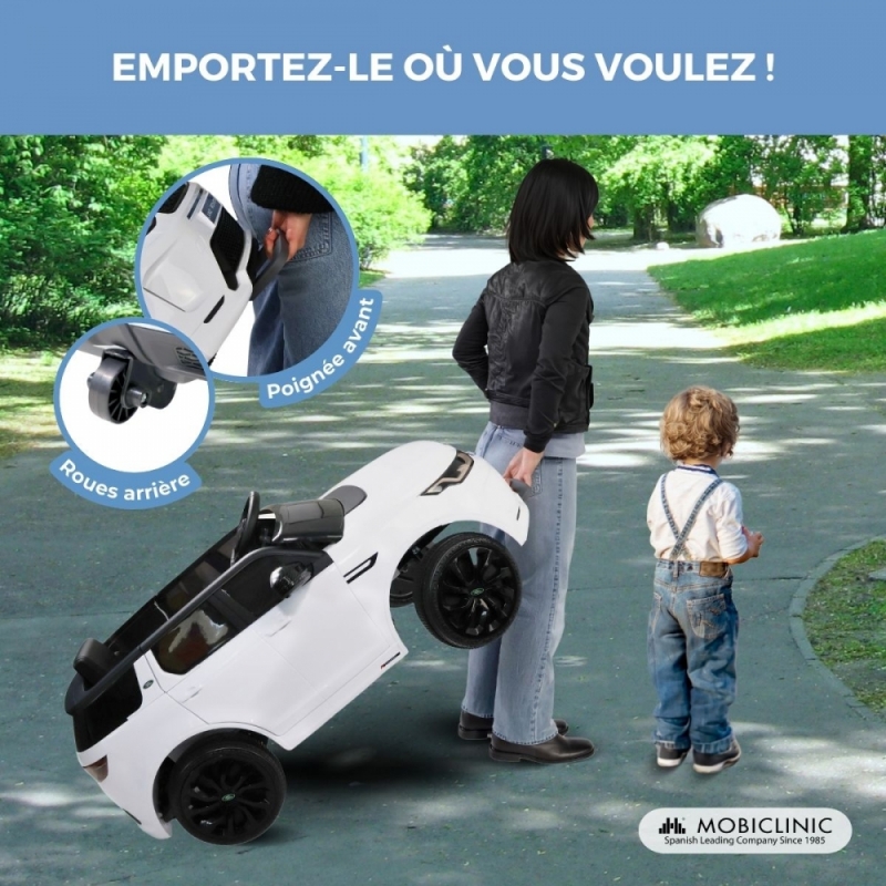 La voiture électrique Mobiqueen, sous licence Range Rover, offre une expérience de conduite authentique et passionnante aux plus petits. Avec des dimensions de 108 cm de long, 65 cm de large et 51 cm de haut, il est idéal pour les enfants entre 36 et 72 mois, offrant un moyen amusant et sûr de développer la motricité et la coordination.