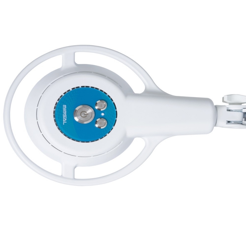 La forme circulaire de la tête et sa poignée en bas facilitent son positionnement exact, répondant aux besoins ergonomiques de toute utilisation.