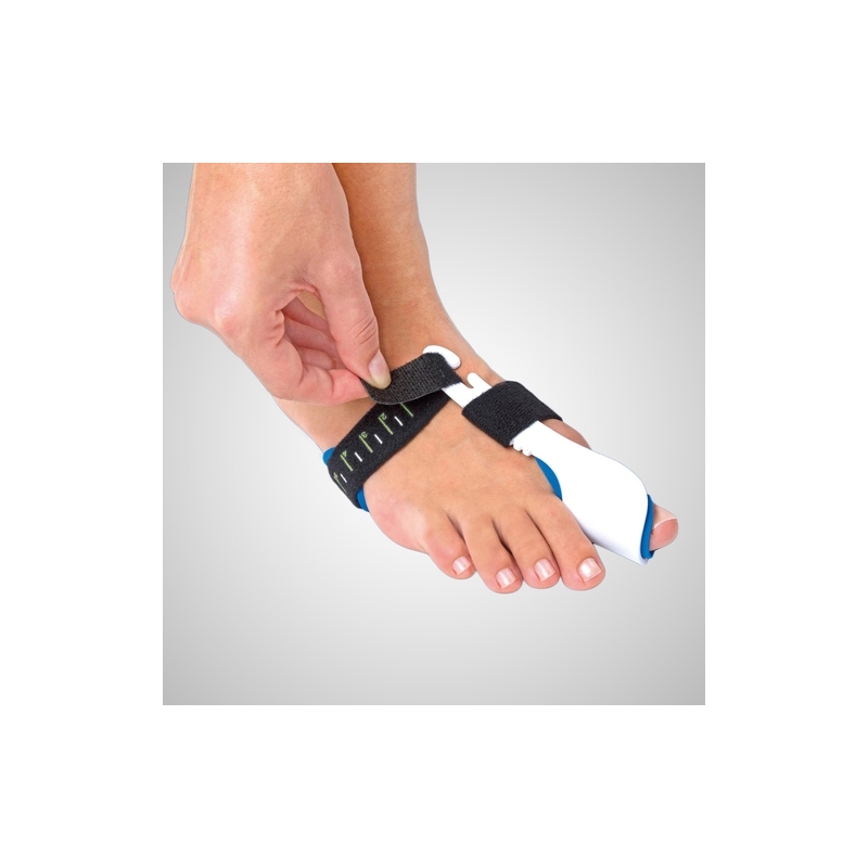 Il intègre un coussin amortisseur pour le 1er orteil, une sangle métatarsienne sur le 5ème métatarsien régulée pour contrôler la pression corrective et une sangle métatarsienne anatomique et rétrocapitale sur le 1er métatarsien. De plus, il intègre un coussin de confort sur le 5ème métatarsien. Fabriqué en thermoplastique et en velours doux. Fermeture micro-velcro.