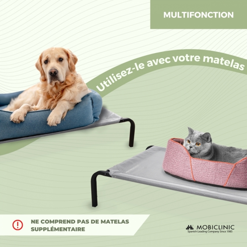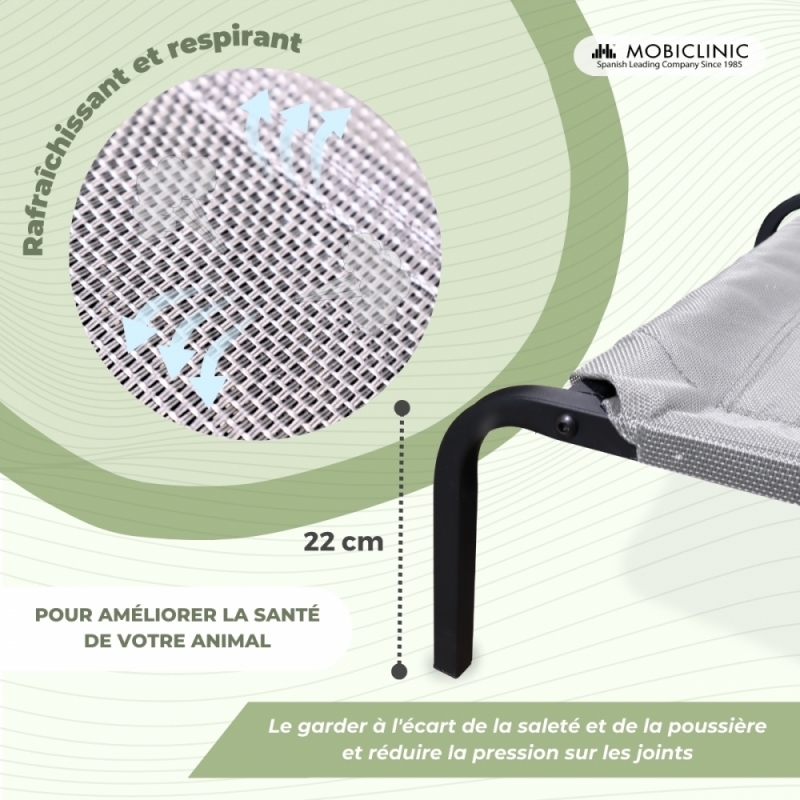 Le lit surélevé pour chien est une option rafraîchissante et isolante pour les journées les plus chaudes de l'été, car il maintient votre animal hors du sol et permet à l'air de circuler plus librement dans toutes les directions. De cette façon, votre chien peut se reposer après une longue promenade et ne pas se salir sur le sol ni geler lorsqu'il est mouillé.