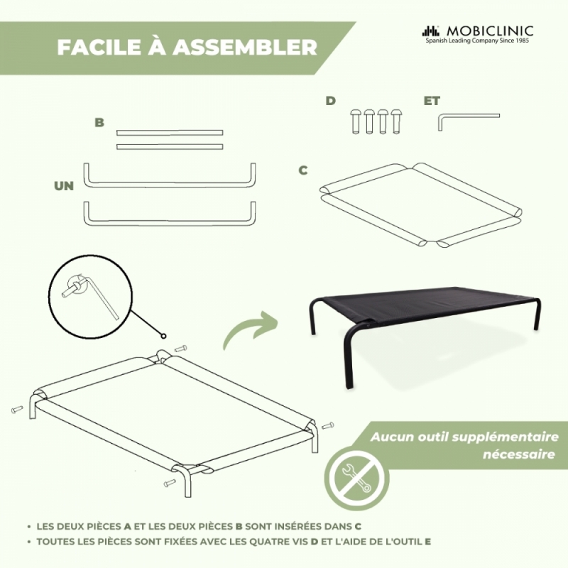 ASSEMBLAGE FACILE : Ce lit pour chien surélevé a une conception simple et très intuitive pour l'assemblage, vous l'aurez donc prêt en quelques minutes seulement et sans avoir besoin d'outils.
