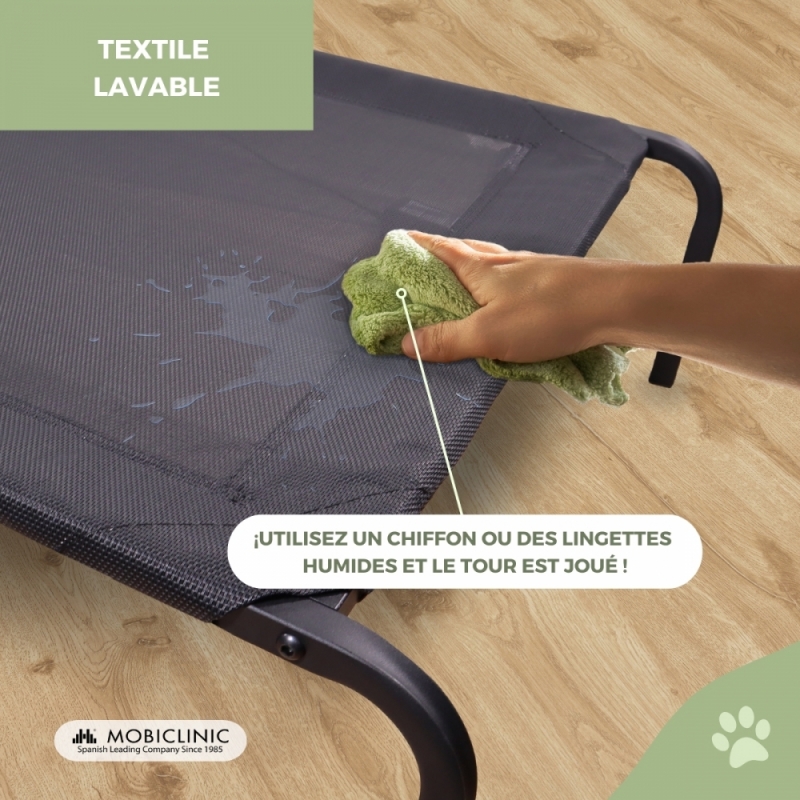 Le lit surélevé pour chien est une option rafraîchissante et isolante pour les journées les plus chaudes de l'été, car il maintient votre animal hors du sol et permet à l'air de circuler plus librement dans toutes les directions. De cette façon, votre chien peut se reposer après une longue promenade et ne pas se salir sur le sol ni geler lorsqu'il est mouillé.