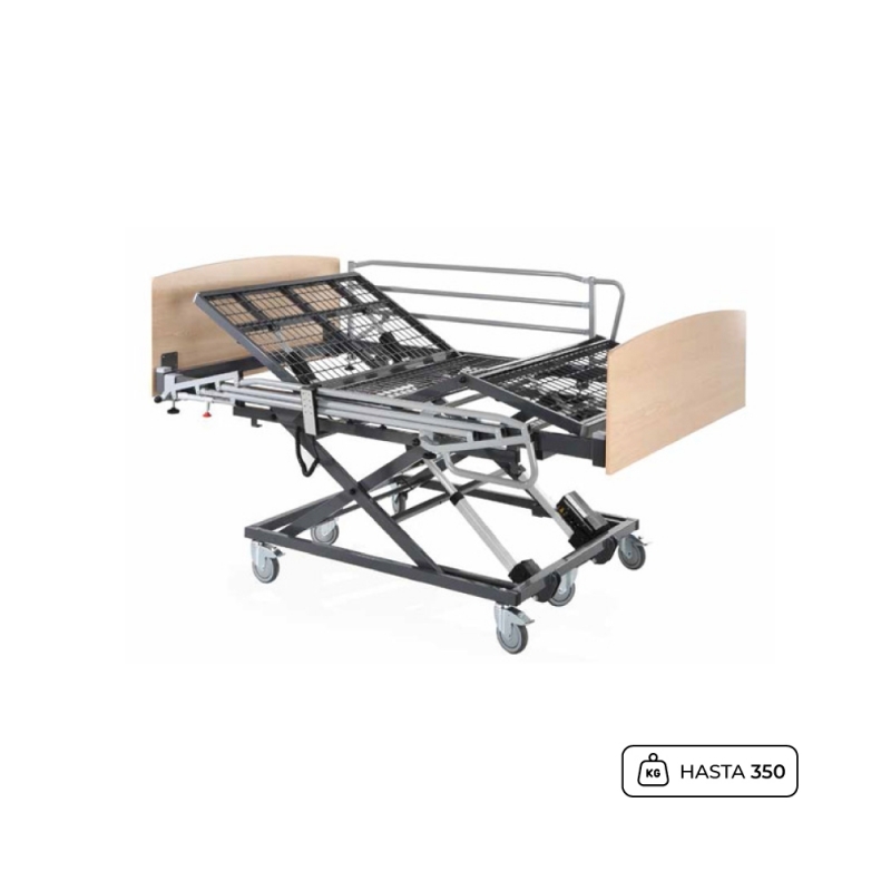 Ce lit bariatrique articulé électrique avec chariot élévateur s'adapte à la courbure de la colonne vertébrale pour profiter d'une posture détendue et confortable qui favorise le repos de l'utilisateur. De plus, grâce à sa commande électrique, le sommier est réglable en hauteur.