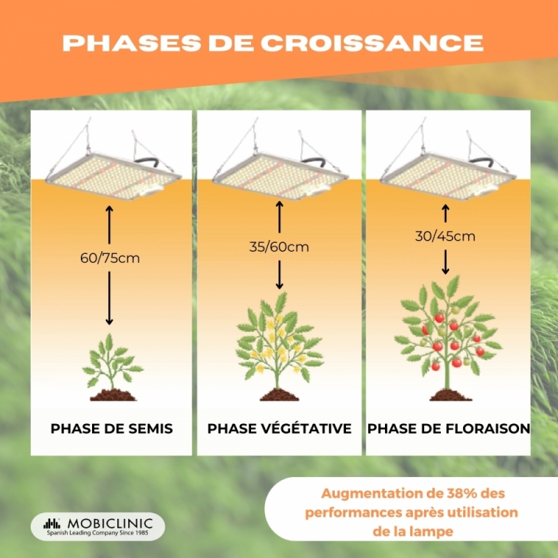 La lampe pour plantes Growlight offre non seulement une technologie de pointe, mais se soucie également du bien-être de vos plantes. Il s'adapte à vos besoins spécifiques , améliorant la photosynthèse et assurant une santé optimale. Les utilisateurs ont signalé une augmentation impressionnante de 38 % du rendement après la transition vers notre lampe de culture. Avec un rendement lumineux exceptionnel allant jusqu'à 2,8 mol/j, vos plantes seront entre de bonnes mains.