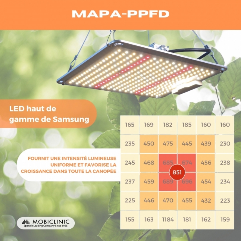 TECHNOLOGIE DE POINTE : La lampe de culture Growlight est équipée de la dernière technologie LED haut de gamme de Samsung. Fournit une intensité lumineuse uniforme et favorise la croissance dans toute la canopée. Découvrez comment la technologie de pointe peut transformer votre expérience croissante.
