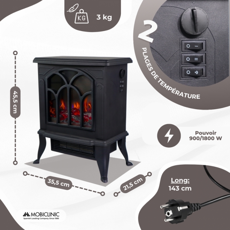 CONCEPTION COMPACTE : Ce foyer électrique a été conçu pour maximiser votre confort. Avec sa taille compacte, il s'intègre parfaitement dans n'importe quelle pièce de votre maison ou de votre bureau. Sa structure légère le rend facile à transporter, vous permettant de le placer facilement là où vous en avez le plus besoin.