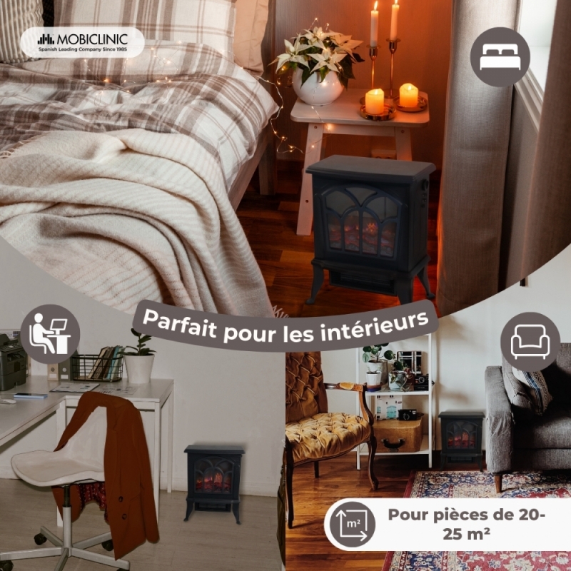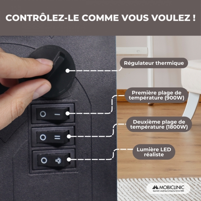 FLAMME 3D RÉALISTE : Cette cheminée imite la sensation d'un feu classique, sans les dangers associés aux flammes nues ou à la fumée. Il est parfait pour générer une atmosphère chaleureuse et naturelle dans votre maison, offrant une expérience de confort similaire à celle d'une cheminée traditionnelle, mais de manière sûre et efficace.
