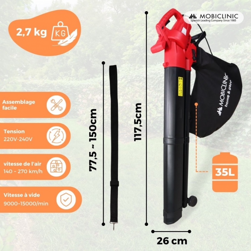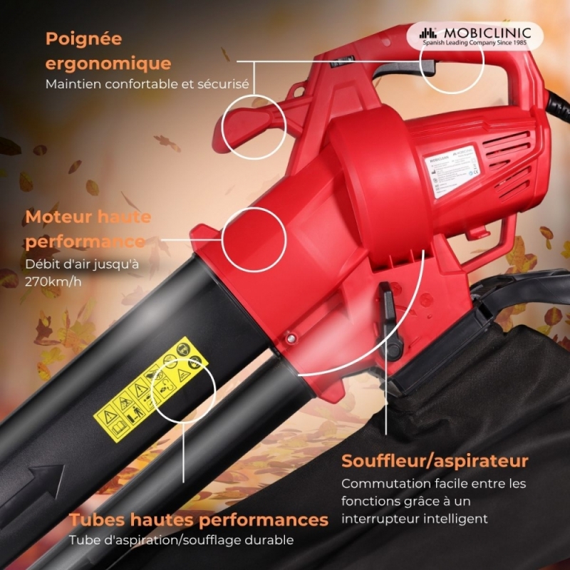 POLYVALENCE 3 EN 1 : Le souffleur Mobiclean offre 6 étapes de réglage de la vitesse. Cet outil aux multiples facettes non seulement souffle , il aspire et broie également, tout en un. Changer entre ses fonctions est très simple. Transformez les tâches quotidiennes comme garder votre jardin, votre maison, votre terrasse ou votre porche propres en une expérience sans tracas.