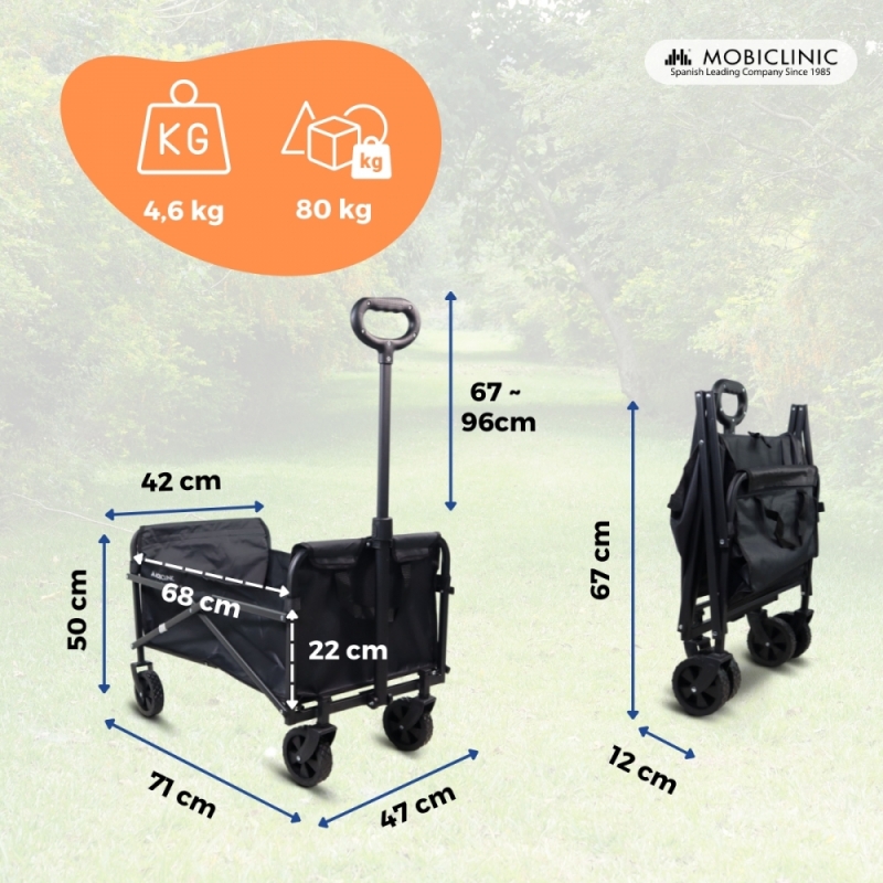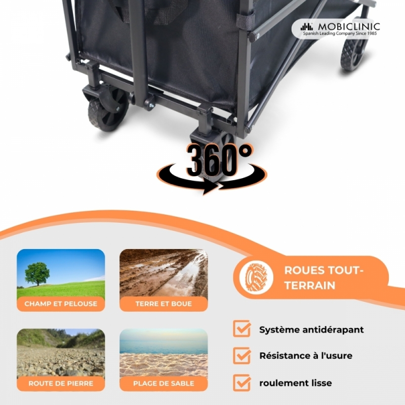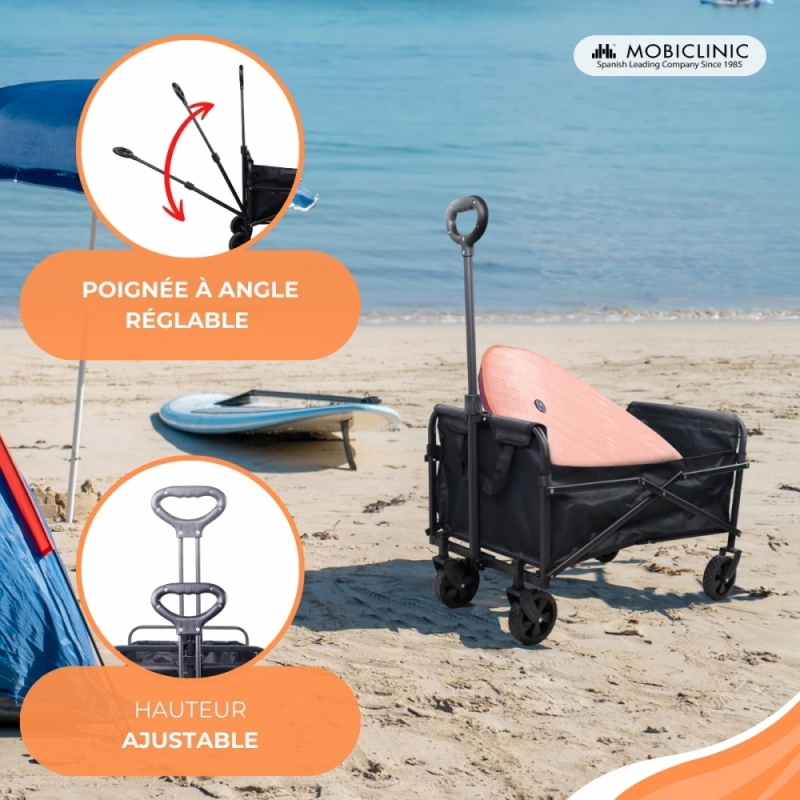 Chariot de transport plage et jardin | Poignée réglable | 71x47x67cm | Pliable | Roues 360º | Duna Basic | Mobiclinic