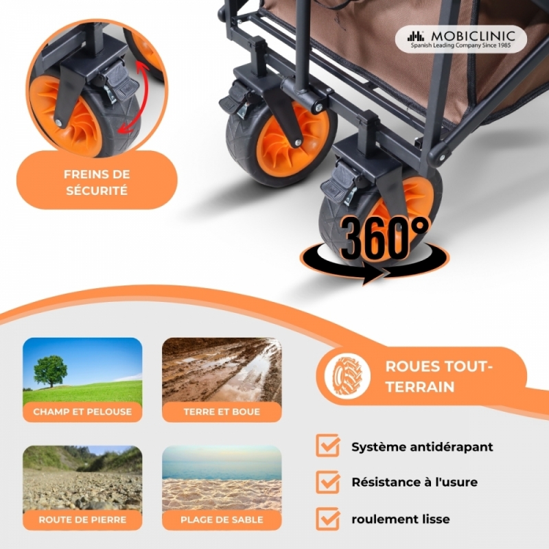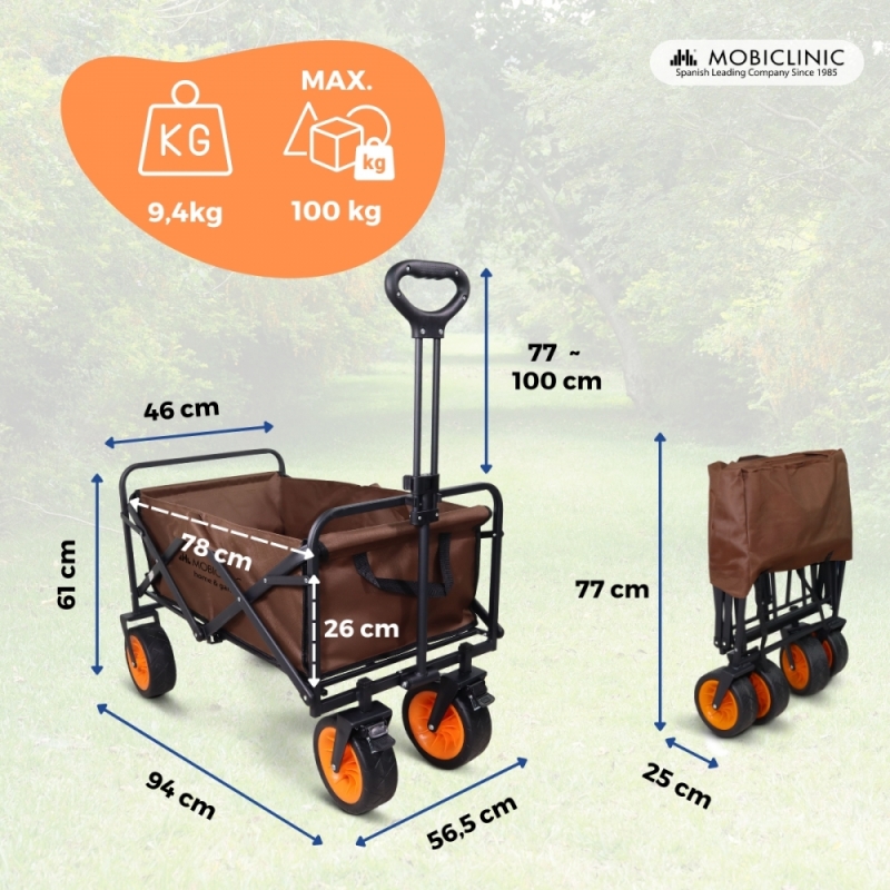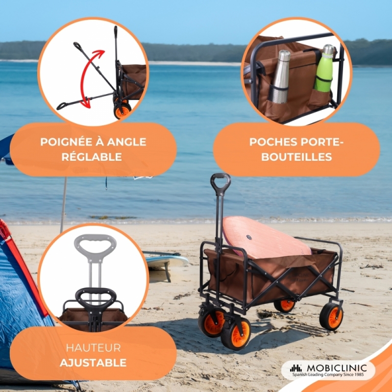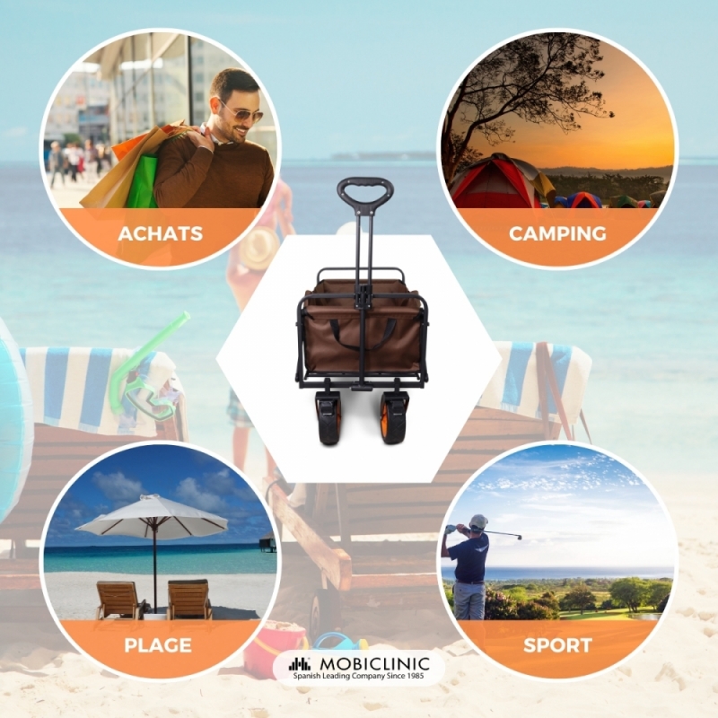 Chariot transport jardin de plage | Poignée réglable |94x56,5x77cm | Pliable | Roues larges à 360º |Duna Pro Plus | Mobiclinic