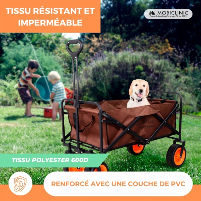 TOUS TERRAINS : Le design du chariot cargo Duna se distingue par sa polyvalence. Avec sa capacité à affronter différents terrains, des surfaces planes aux terrains plus accidentés , ce chariot de transport devient le choix idéal pour les activités de plein air et quotidiennes.